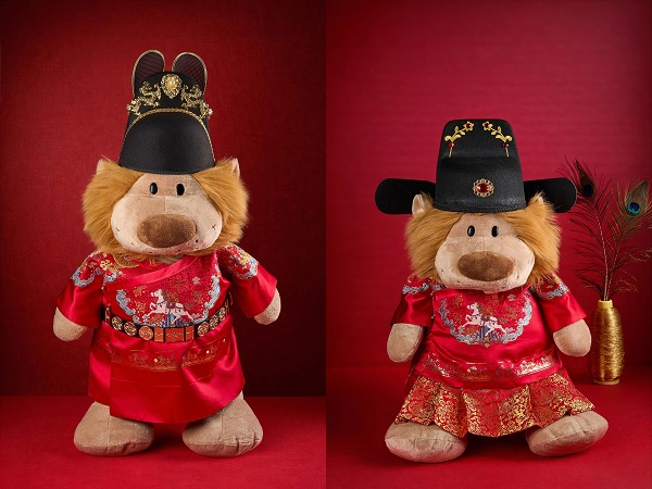 本次限量公仔共推出两款极具寓意的大号预订款及一款中号限量款:大号预订款 - 龙马精神·福禄双全:狮子头戴象征尊贵的明代翼善冠,身着团龙柿蒂纹,寓意“事事如意”;纹样中跃出的骏马与底边奔腾的祥云奔马纹相呼应,祝愿“龙马精神”,事业腾飞。织造用料考究,融合纯金线、彩金线、幻彩螺钿线及仿鸵鸟毛等珍贵材料与桑蚕丝交织,璀璨夺目。