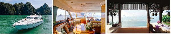 独家“皇家安达曼海尊享之旅(Royal Andaman Sea Package)”邀宾客登上62英尺豪华私人游艇“Thim Thaem Toei”号,于泰国南部波光粼粼的安达曼海域,尽享海上隐逸时光